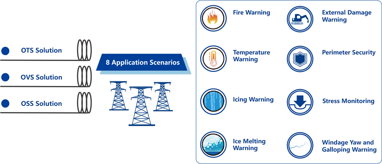 行业专用网络中铺设有大量光缆线路、电力电缆、油气管道,沿途环境复杂多变,经常受到外力、气候和自然灾害的威胁;对于基地防区,甚至存在非法入侵的风险。分布式光纤传感(DOS)系统可广泛应用于电力、运营商、公用事业、石化等行业。结合人工智能、模式识别、GIS地图等技术,提供差异化、人性化、多维度的监测预警解决方案,保障安全生产。